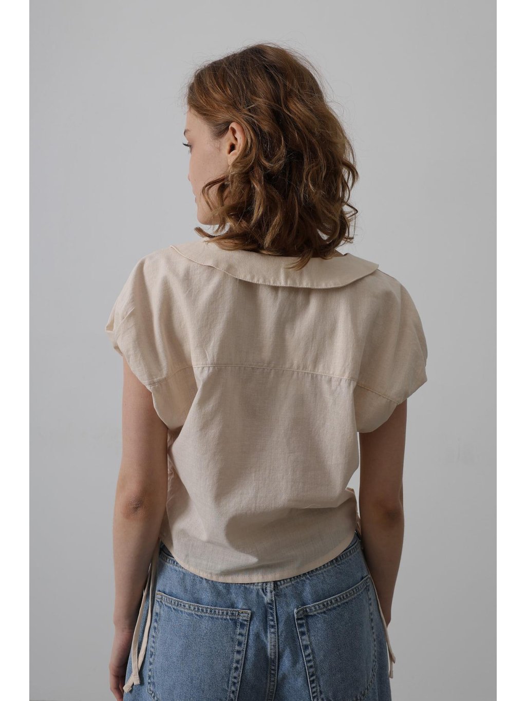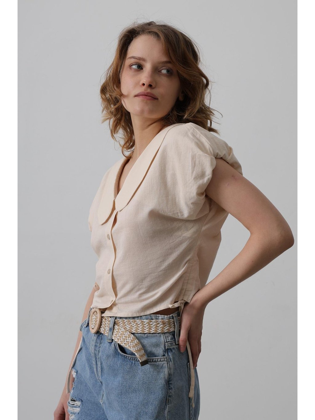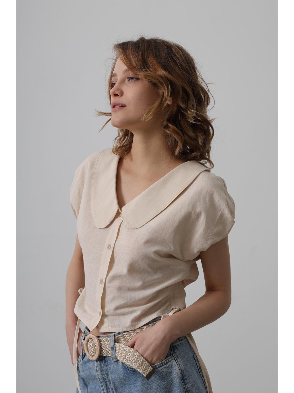 Romantická a jemná dámska blúzka v prírodnej béžovej farbe s elegantným vintage golierom.