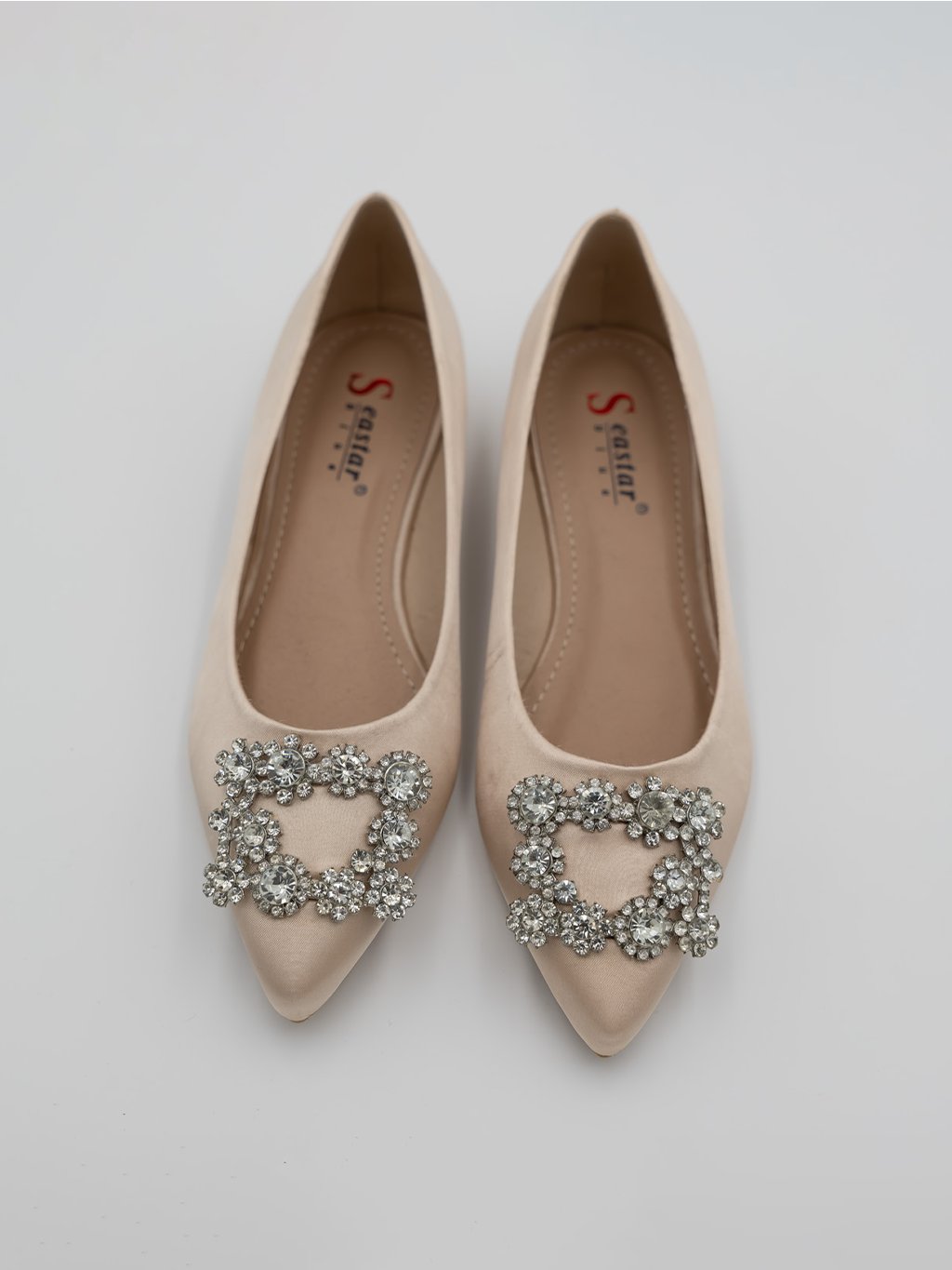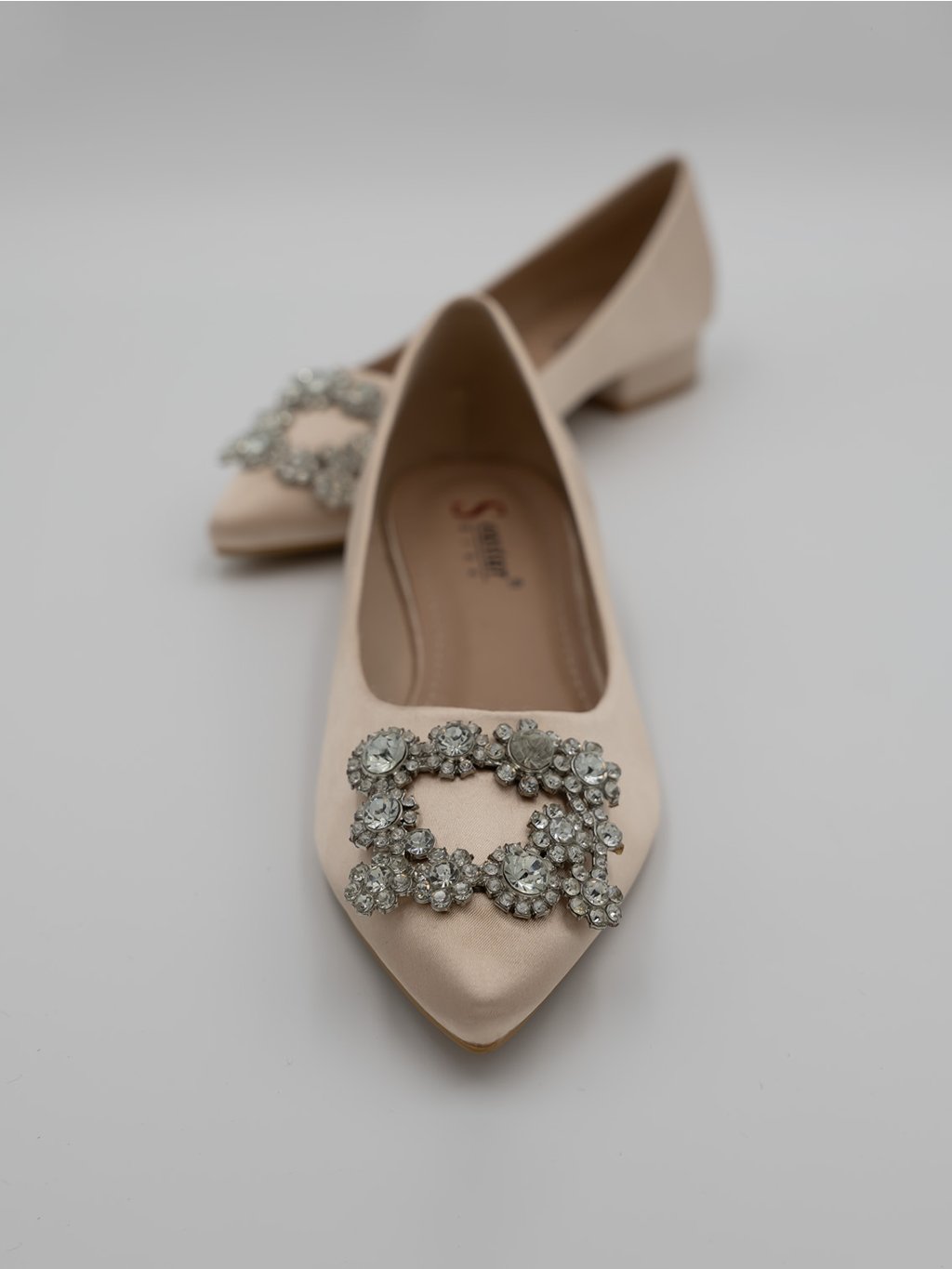 Prednú časť zdobí výrazná kryštálová aplikácia, ktorá dodáva lodičkám nádych luxusu. Perfektné na slávnostné udalosti alebo štýlové každodenné nosenie.