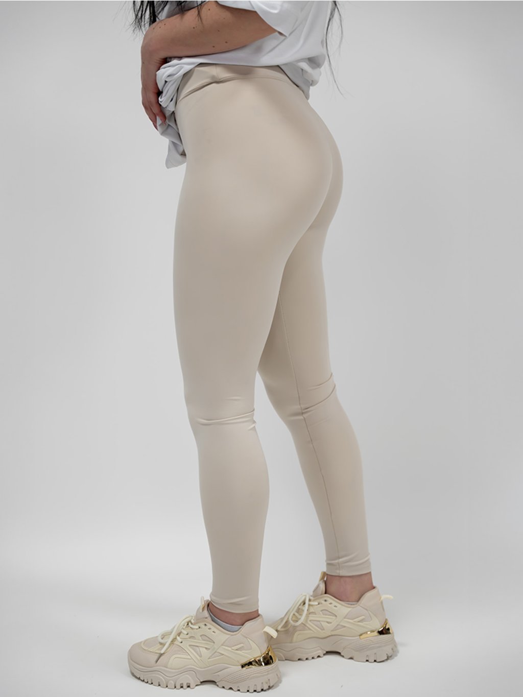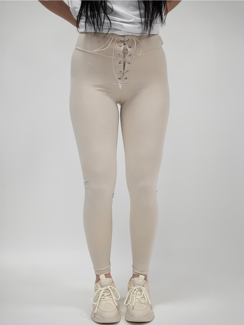 Béžové legíny so šnurovaním