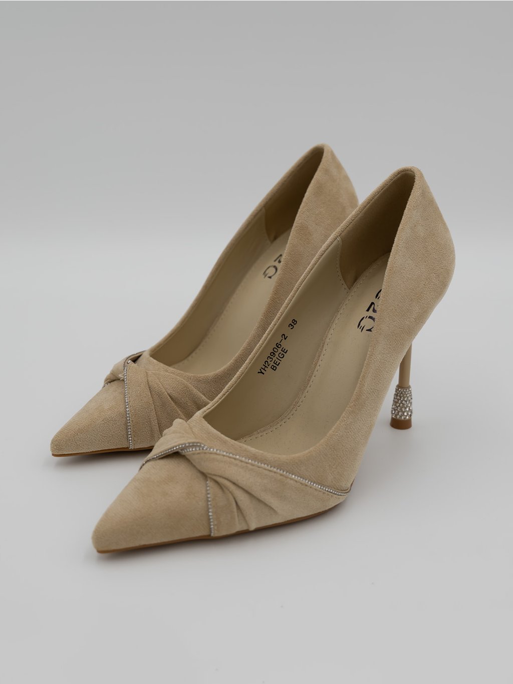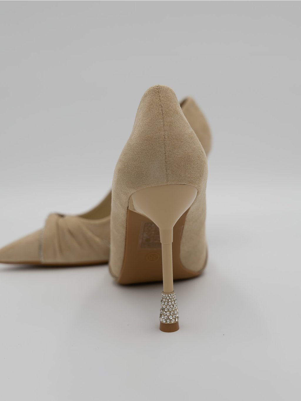 Vyrobené z jemného semišu, ponúkajú pohodlie a sofistikovaný vzhľad. Ich úzky podpätok je ozdobený jemnými kamienkami, ktoré pridávajú topánkam nádych luxusu. S elegantným riasením a jemným švom sú tieto lodičky ideálnou voľbou na špeciálne príležitosti, večierky alebo svadby. Vysoký podpätok vám opticky predĺži nohy a zabezpečí sebavedomý krok.