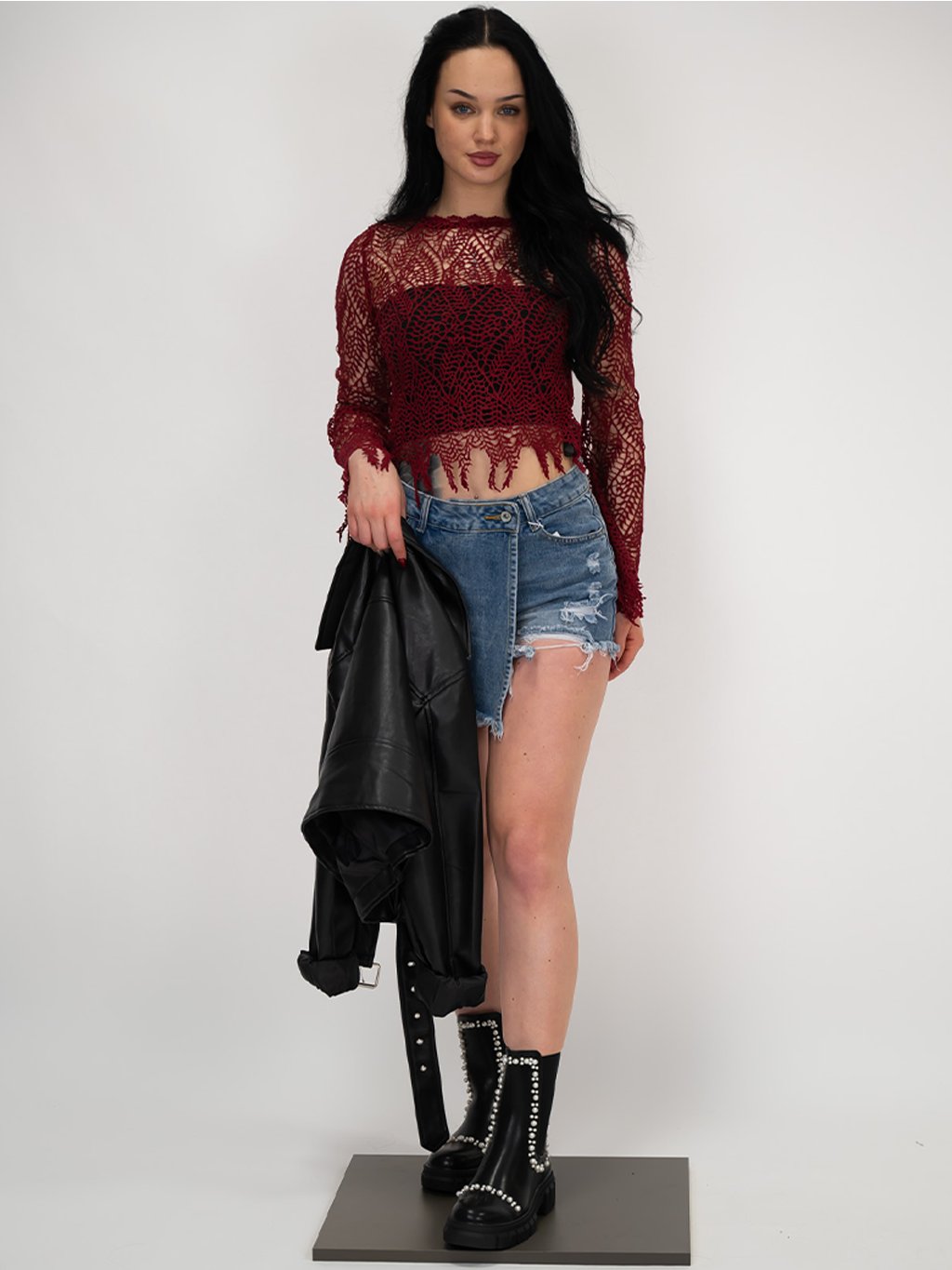 Je ideálnou voľbou na vytvorenie sofistikovaného a trendy outfitu. Top má dlhé rukávy a romantické háčkované okraje, ktoré dodávajú štýlu jedinečný vzhľad. Kombinujte ho s rifľami alebo sukňou pre moderný a elegantný vzhľad na každú príležitosť.