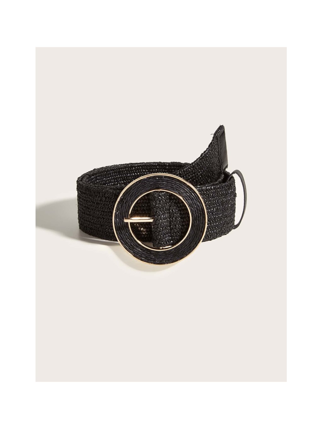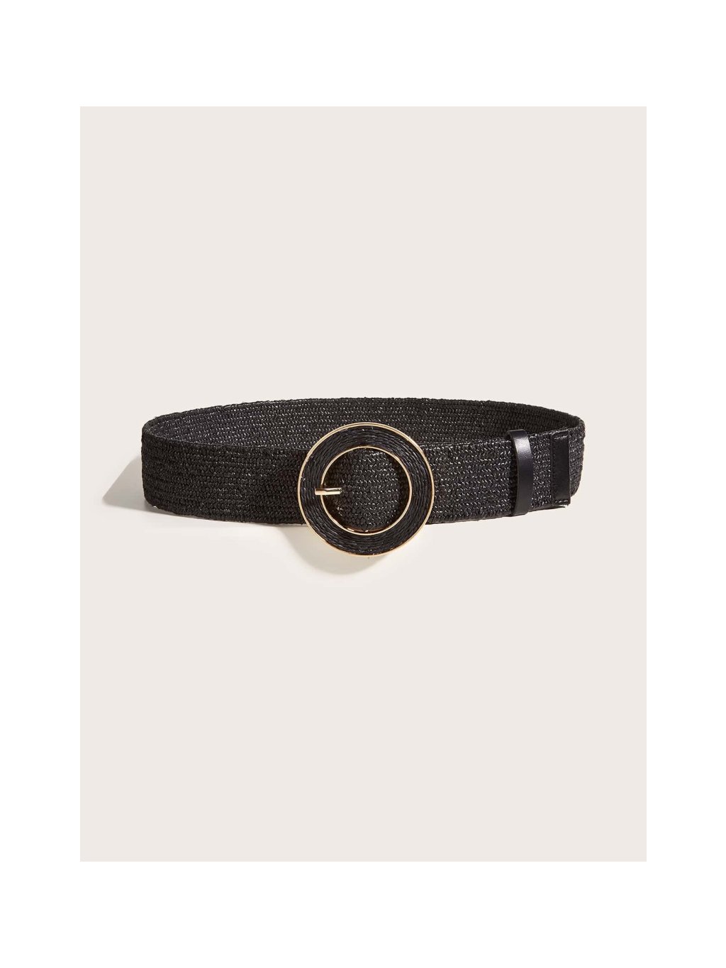 Široký opasok v čiernej farbe krásne zvýrazní pás a skvele doplní šaty, tuniky či overaly. Dominantná okrúhla pracka s decentným zlatým lemovaním pridáva moderný akcent a zároveň udrží opasok pevne na mieste. Vďaka elastickému prevedeniu je pohodlný a prispôsobí sa postave.