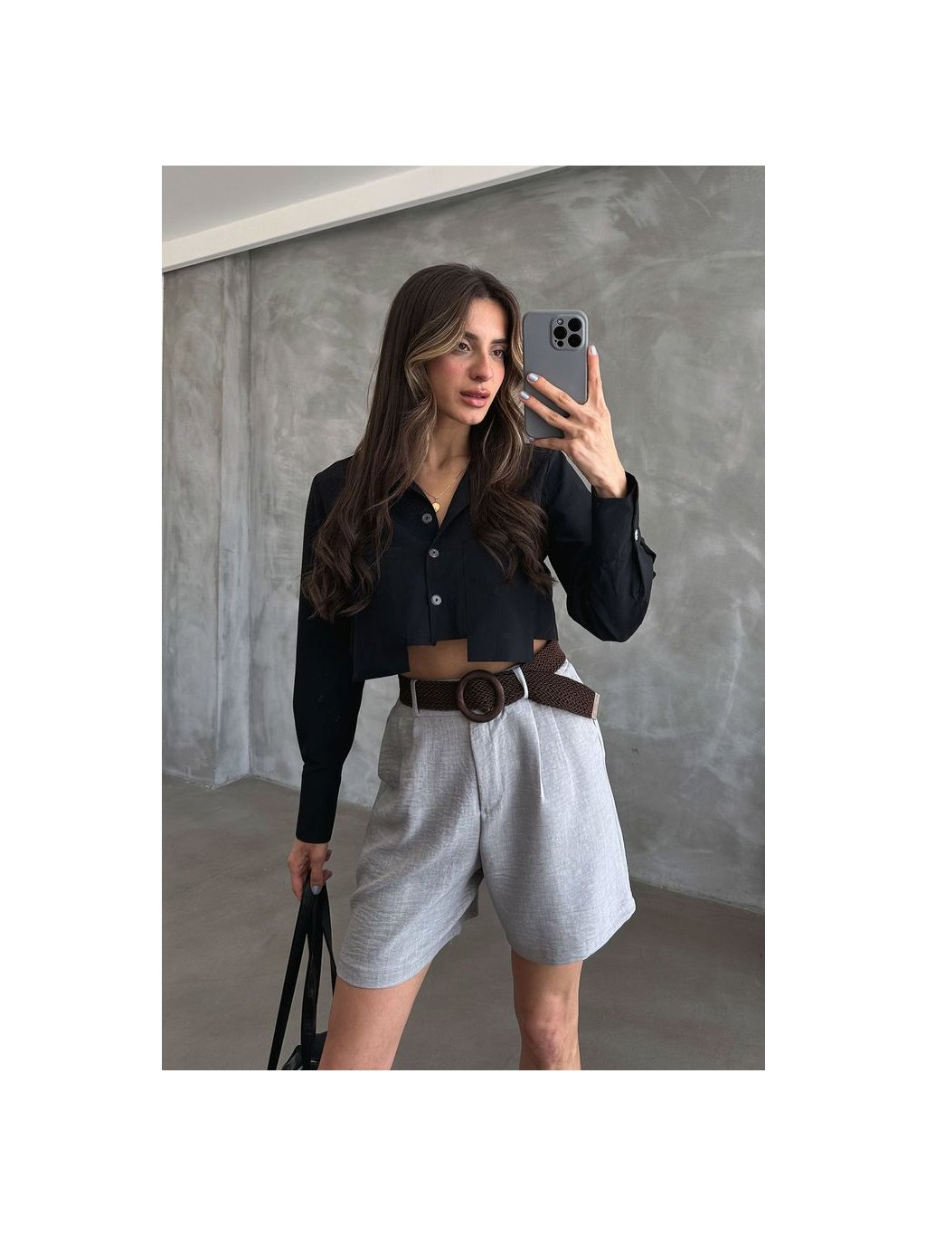 Vysoký pás so zapínaním na zips a pútkami na opasok dodáva šortkám sofistikovaný vzhľad a skvele tvaruje postavu. Ich voľný strih zabezpečuje komfort pri nosení, zatiaľ čo jemná, ľahká tkanina ich robí ideálnymi na teplé dni. Sú skvelou voľbou na casual aj elegantné outfity – môžete ich kombinovať s jednoduchým topom a sandálmi na ležérny look alebo s blúzkou a lodičkami na formálnejšie príležitosti.