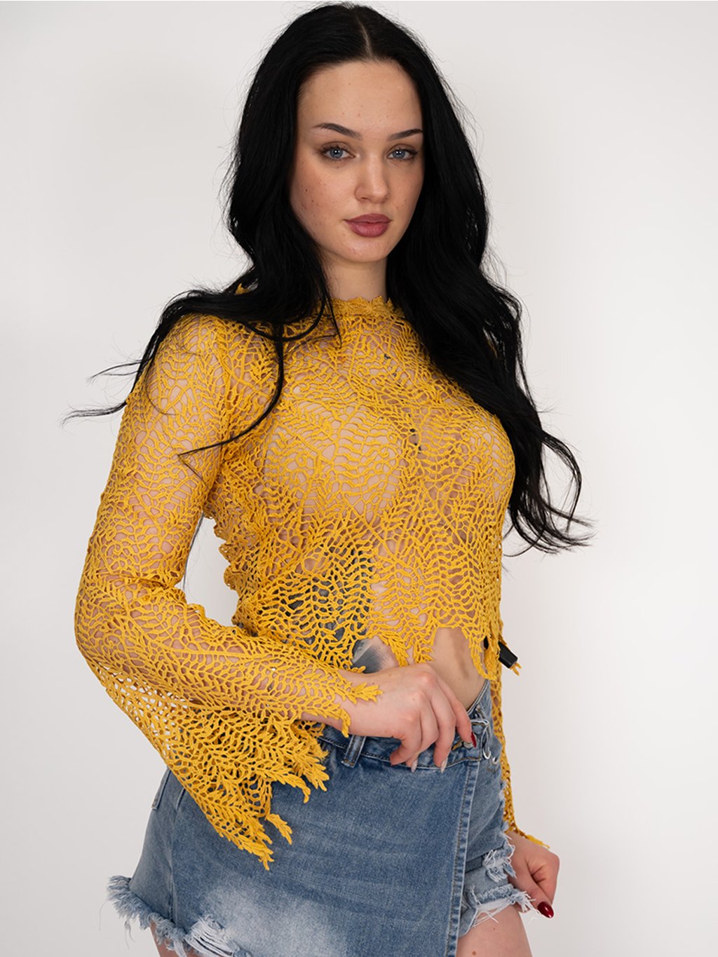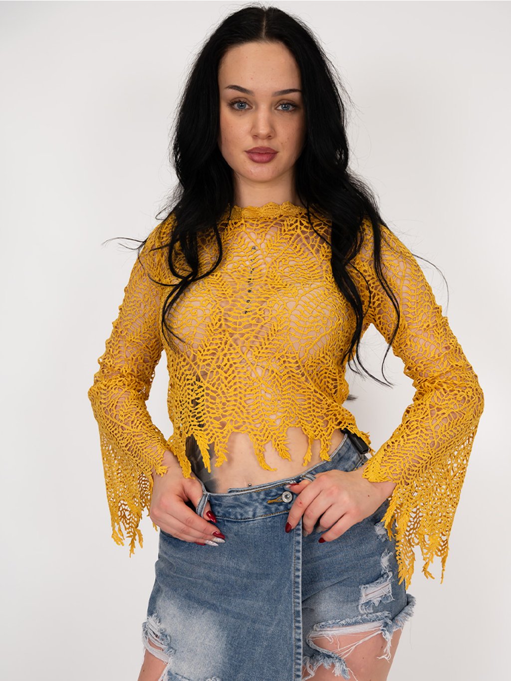 Je ideálnou voľbou na vytvorenie sofistikovaného a trendy outfitu. Top má dlhé rukávy a romantické háčkované okraje, ktoré dodávajú štýlu jedinečný vzhľad. Kombinujte ho s rifľami alebo sukňou pre moderný a elegantný vzhľad na každú príležitosť.