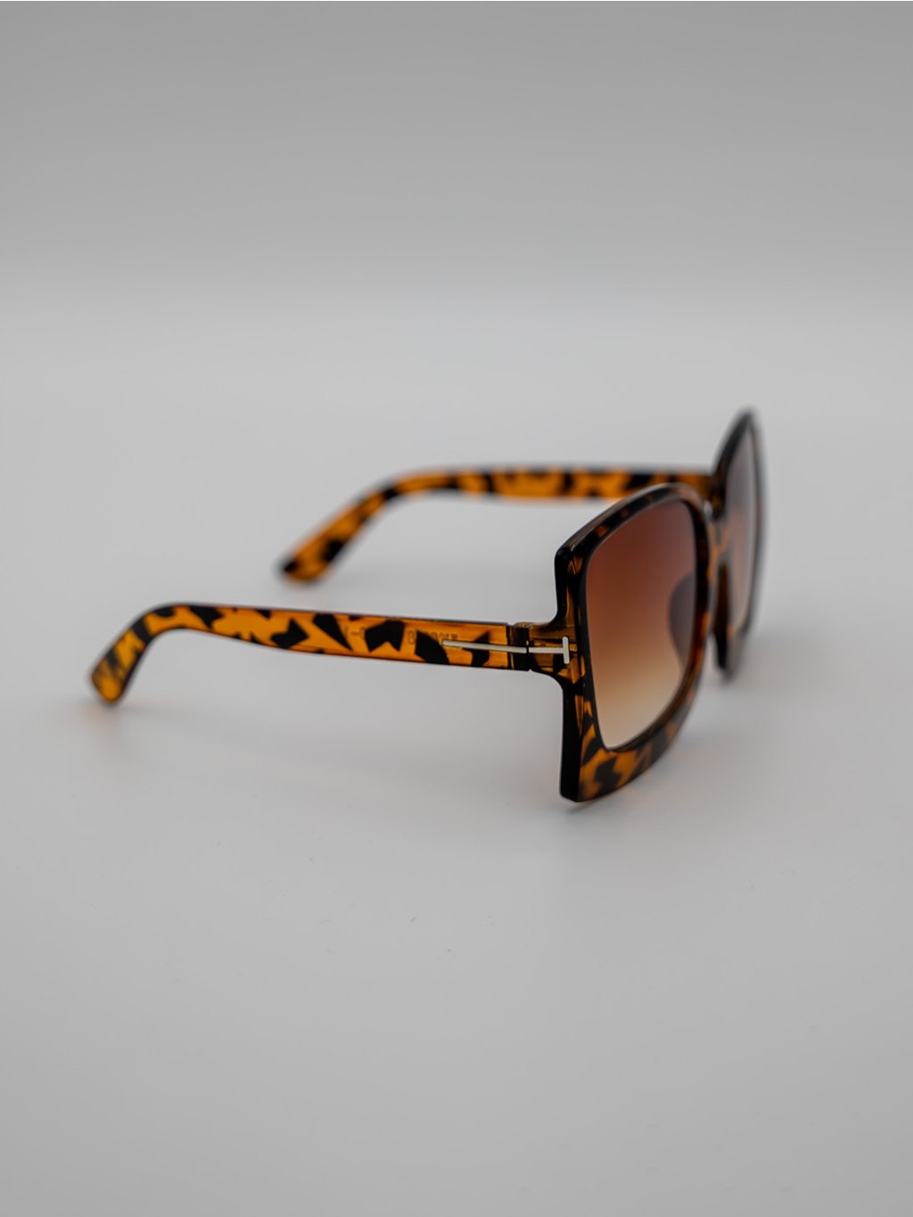 Okuliare vynikajú hnedým prechodovým sklom a štýlovým hnedo-čiernym vzorom na ráme.